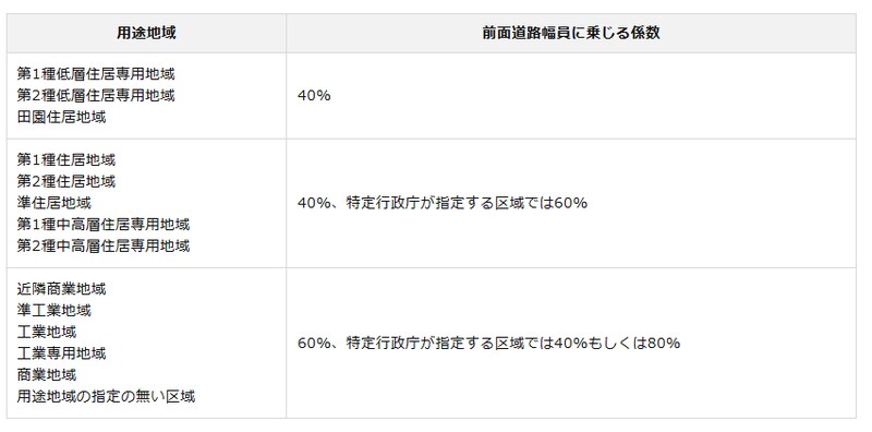 例えば、第1種低層住居専用地域で指定容積率が200%に設定されていても、前面道路幅員が4mしかない土地では「4m×40%=160%」が基準容積率となり、200%を消化できません。つまり、実際に建てられる延べ床面積は減ってしまうのです。