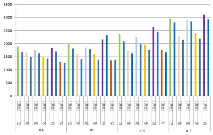 ※令和6年夏場所、事前申し込み2,254本、実績1,980本。令和7年夏場所、事前申し込み2,916本、実績2,849本。実績は過去最高。