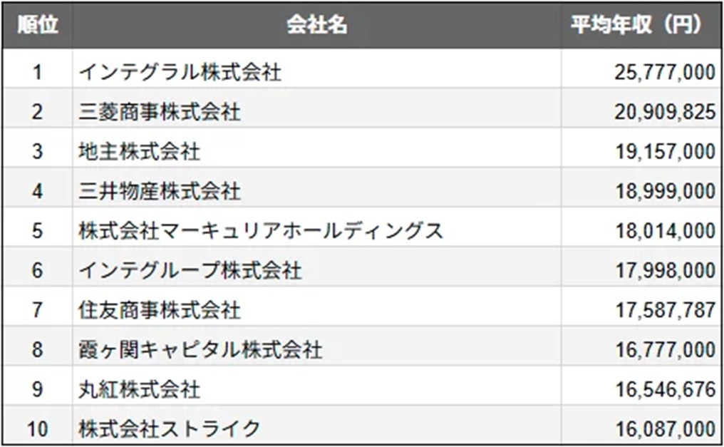 東京・千代田区に本社を置く上場企業の「平均年収ランキング」TOP10