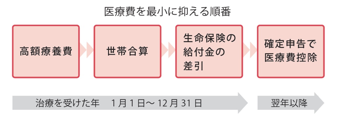 [図表2]医療費を最小に抑える順番 出所:『【図解】医療費・仕事・公的支援の悩みが解決する がんとお金の話』(彩図社)より引用
