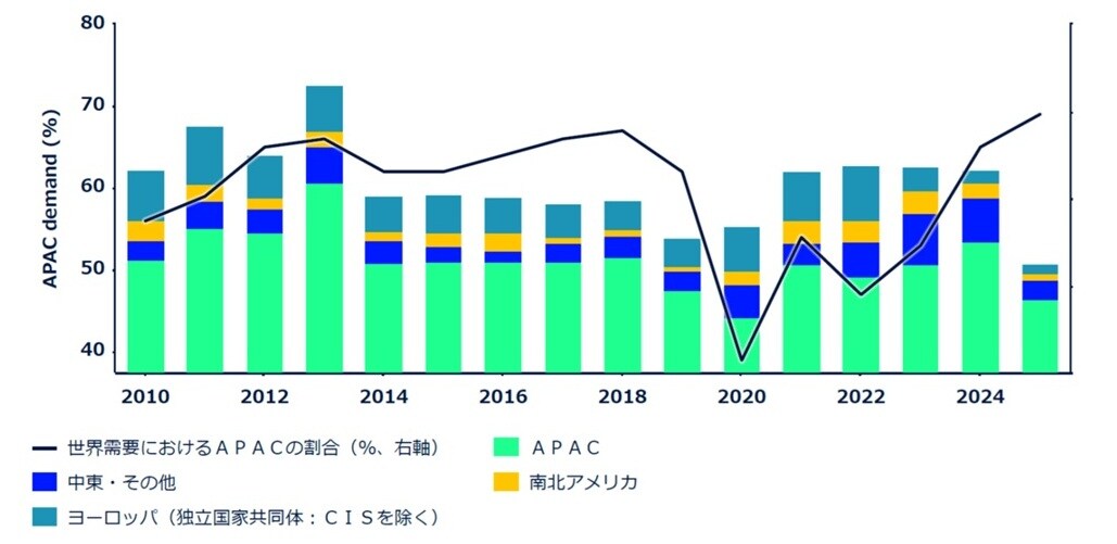 しかし、この傾向はその後数年で反転し、APAC地域のシェアは着実に回復しています。2025年半ばには、当地域は世界全体の需要の69%を占めるまでになり※2、失地を回復しただけでなく、2010年~2019年の平均(63%)を上回る水準となりました。これは、APAC地域が現物金投資において再び圧倒的な地位を占めるようになったことを明確に物語っています。