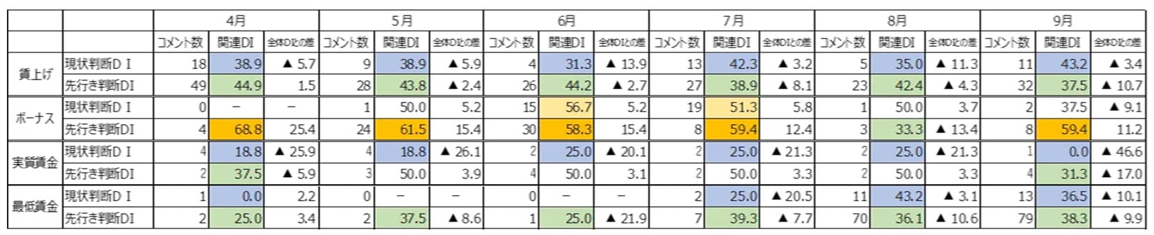 9月調査で「実質賃金」関連先行き判断DIは31.3で、8月までの4ヵ月連続50.0という記録が途絶えました。