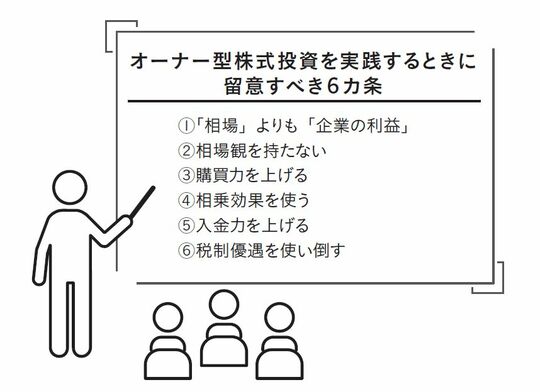 ここまでオーナー型株式投資の投資先として適した「構造的に強靭な企業」及び事業の経済性を見極める上でのヒントについて説明してきました。ここからは、オーナー型株式投資を実践するときに留意すべき6カ条の中から、『「相場」よりも「企業の利益」』『相場観を持たない』『購買力を上げる』を紹介します。