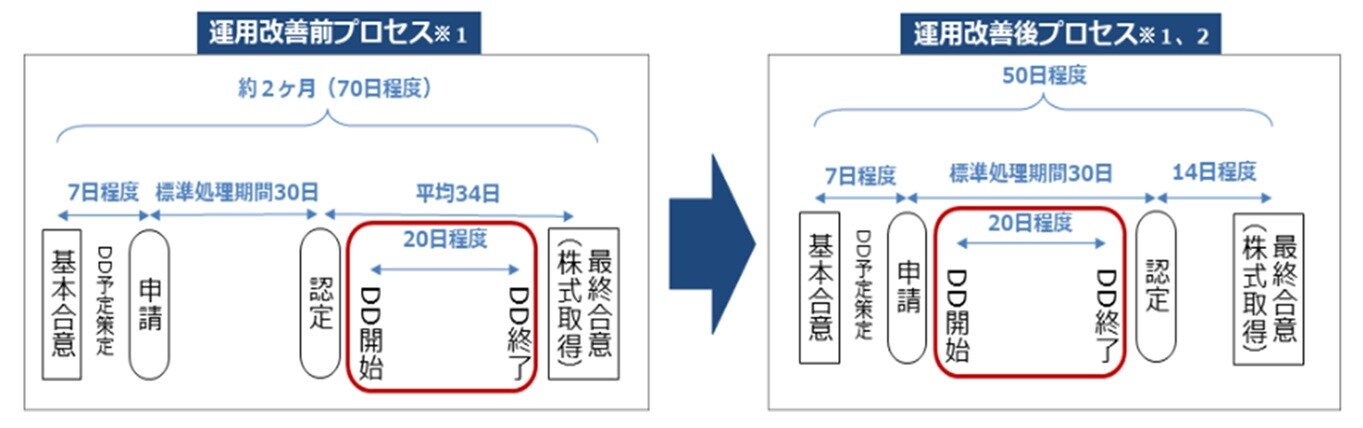 2023年の税制改正で、経営力向上計画の認定手続きにおける運用が改善され、経営力向上計画の認定前にDDを実施することが可能になりました。基本合意から最終合意まで約70日かかっていたものが、約50日に短縮されたんです」