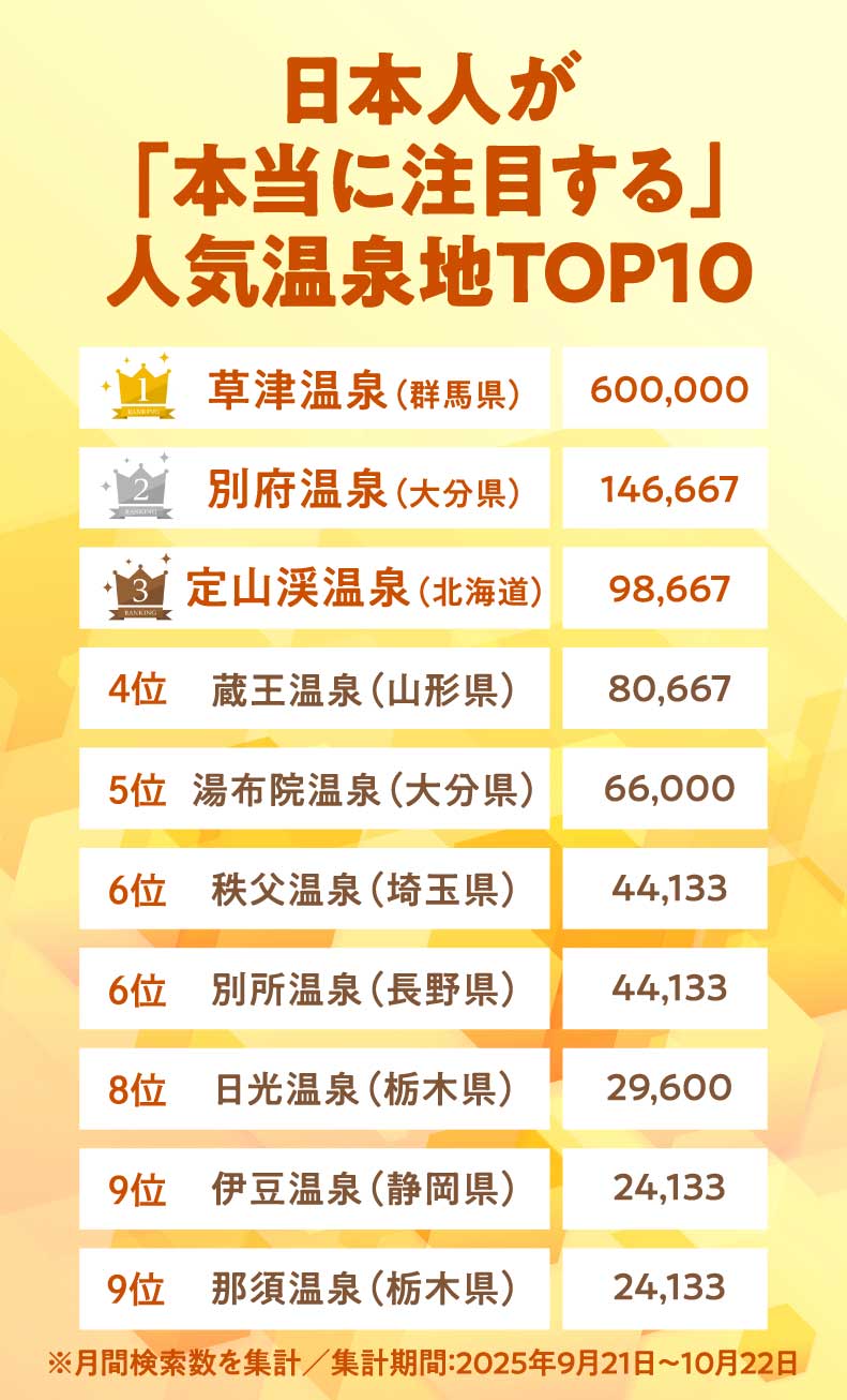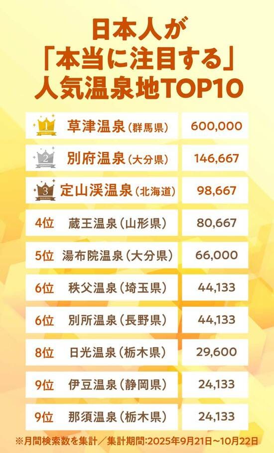 (※写真はイメージです/PIXTA) 連載 シニア世代におくる厳選情報【第160-2回】 【ランキング】日本人が「本当に注目する」人気温泉地TOP10~2025年・秋 2025.10.24 ライフ 仕事・IT THE GOLD 60編集部