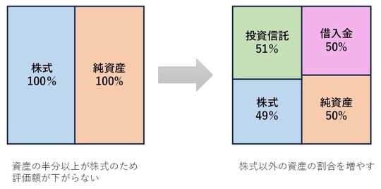 そこで、持株会社が事業会社の株式以外の資産も保有することで、カブトクを回避する手法があります。それが、「株特外し」です。
