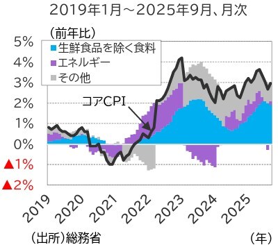 9月の全国消費者物価指数(生鮮食品を除く総合、以下コアCPI)は前年比+の2.9%(8月:同+2.7%)と市場予想通りの結果となりました(図表4)。