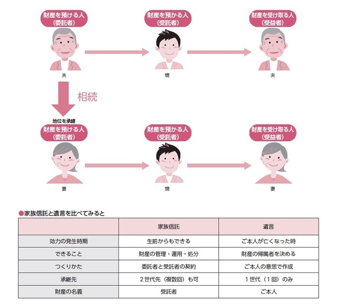 ご主人が亡くなったときは、その預かった財産についての権利を、当初指定した方に承継してもらいます。