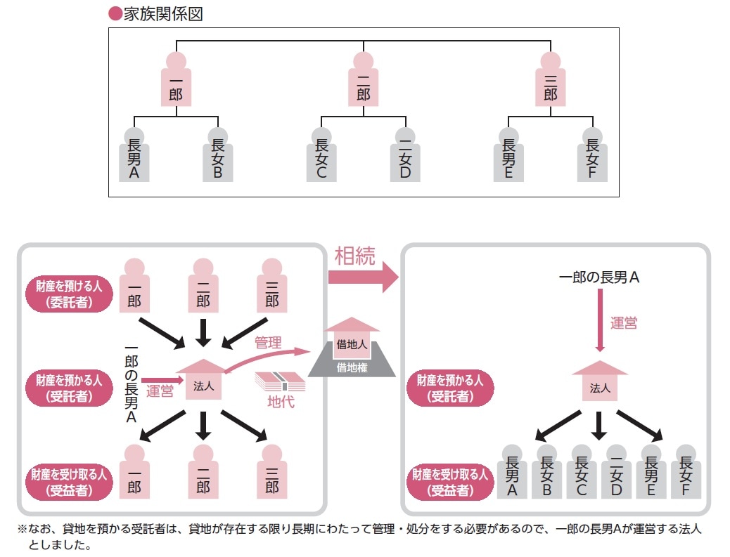 このため、兄弟が持っている貸地を、一郎の長男Aに管理・運用・処分を任せる信託を検討してみました。