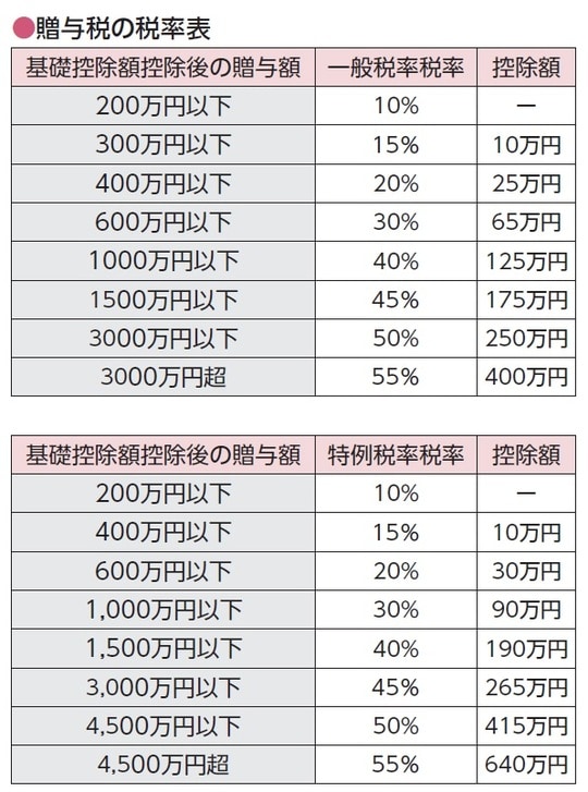 贈与税の税率には、一般税率と特例税率の2種類があります。特例税率は、親や祖父母など直系尊属から18歳以上の者が贈与を受けた場合に使うことができます。なお、特例税率を使う場合は、最初に提出する贈与税の申告書に戸籍謄本等を添付する必要があります。