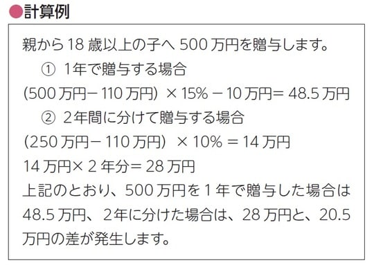 暦年課税制度は、贈与税の原則的な課税方式です。特別な申請をしない限り、自動的にこの制度が適用されます。この制度を使う場会、1年間(1月1日~12月31日)に贈与を受けた額が基礎控除額(110万円)を超える場合に、贈与税の申告と納税が必要になります。