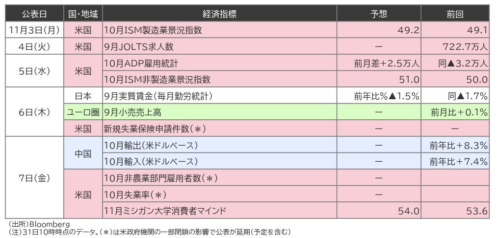 来週は政府閉鎖が続くなか、引き続き米国の雇用関連統計が公表されるか注目しています(図表1)。