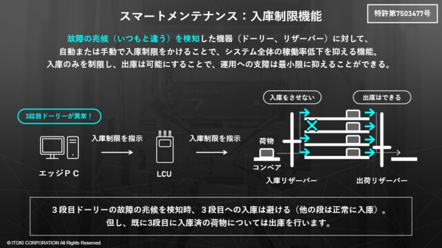「ITOKIアドバンスドメンテナンス」は、シャトル式自動倉庫「システマストリーマー SAS-R」の稼働データを収集・AI解析し、故障の兆候を事前に把握することで、突発的な設備停止のリスクを軽減し、業務計画の安定化と、物流の「止まらない運用」を実現する。以下、PR TIMESより。