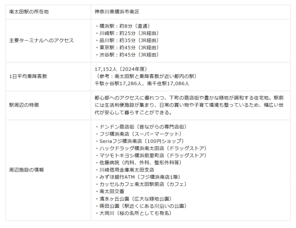 このように南太田駅は、横浜駅までのアクセスの良さに加え、自然環境や生活環境、教育・医療の充実した街として、多様な世代にとって住みやすいエリアになっています。