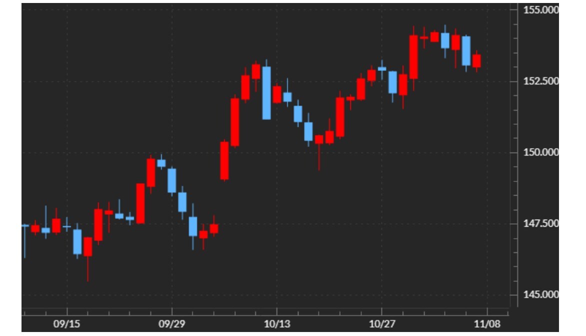 先週の振り返り=株価急落局面で何度か152円台まで米ドル反落