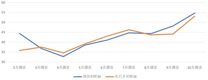 沖縄DIは54.4と好調維持、南関東・東京都も3ヵ月連続50超