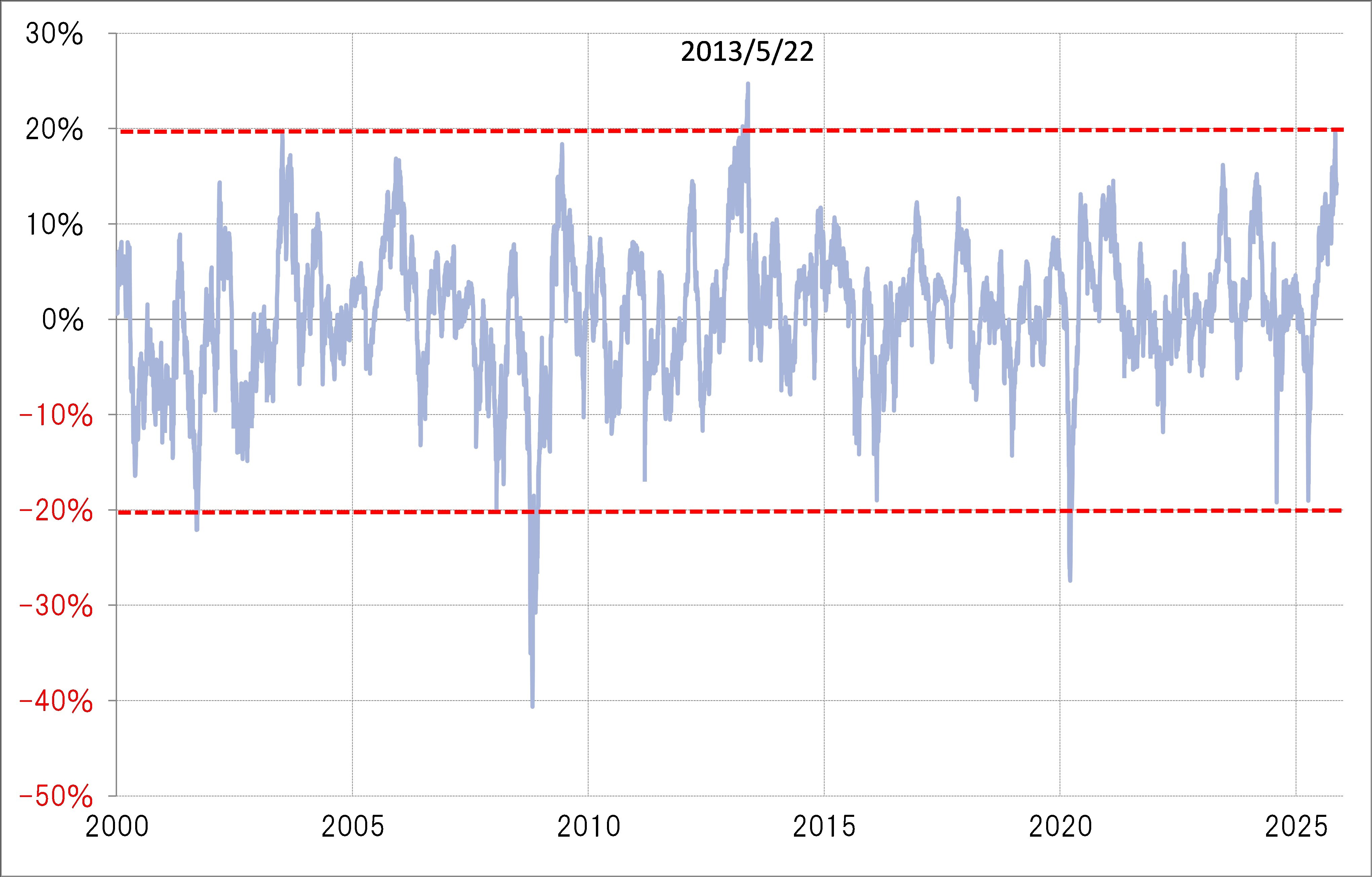 日本株の場合なら、それは短期的な「上がり過ぎ」の影響ということではないでしょうか。日経平均の90日MA(移動平均線)かい離率は一時20%まで拡大、短期的な「上がり過ぎ」懸念がかなり強くなっていました(図表4参照)。シャットダウン終了は、本来的には株価が好感する要因ですが、それにもかかわらず株買いが行き詰ったことで、すでに株価が「上がり過ぎ」になっていることを確認し、その修正が始まったということではないでしょうか。