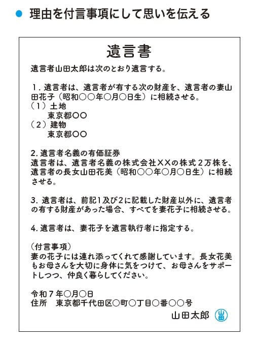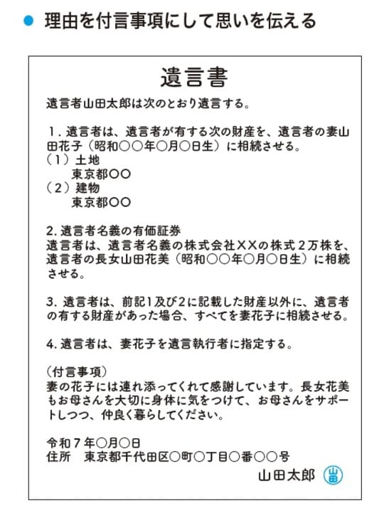 遺言を争いのきっかけにしないためには、内容に「なぜそうしたのか」という理由を添えることが大切です。