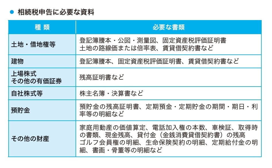一方、実際に申告をする段階では、より正確で正式な書類が必要になります。具体的には、不動産の登記事項証明書や固定資産税評価証明書、預貯金の残高証明書、株式や投資信託の評価資料、生命保険の支払い通知書などです。