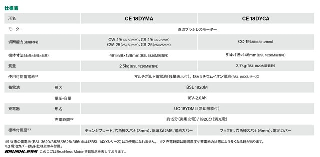 URL:https://www.hikoki-powertools.jp/products/powertools/li-ion-cutter/ce18dyma/ce18dyma.html