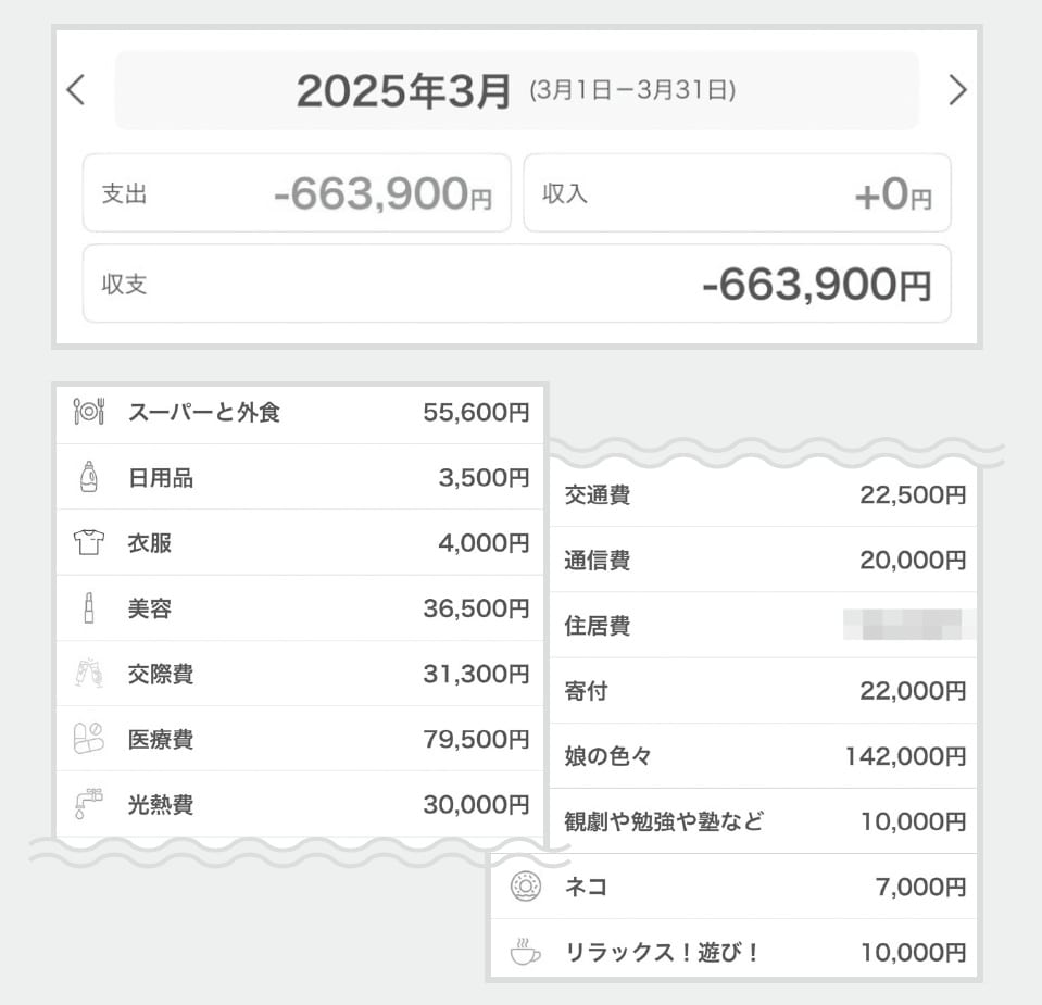 週に1日の「お金を使わない日」は継続しており、2月は週2日使わなかったことも。税金や入学金など大きな出費もなく、平穏な支出。