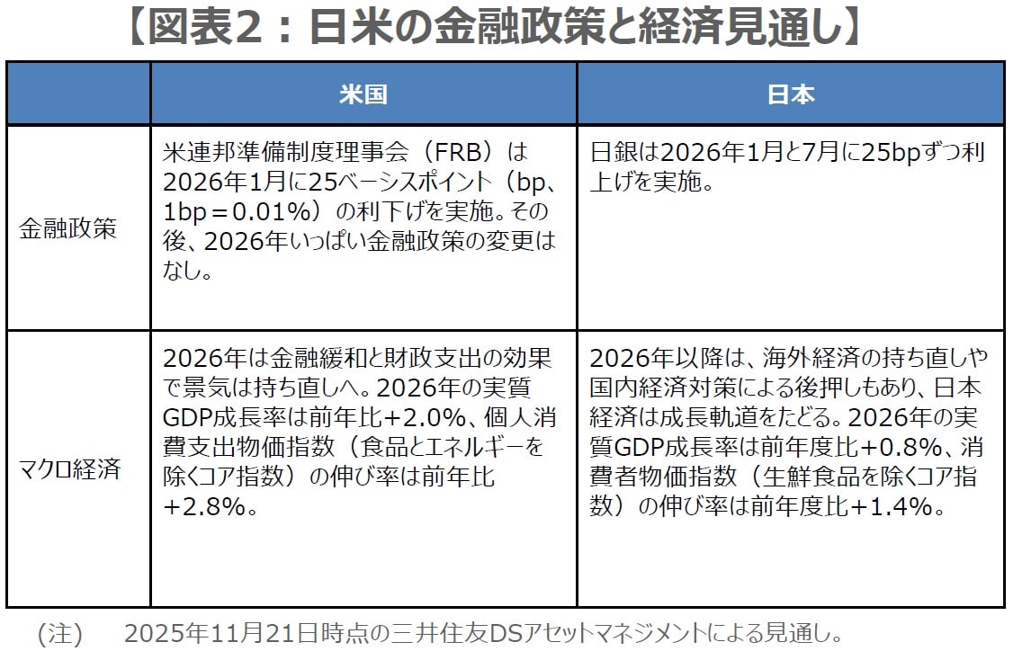 弊社は、米連邦準備制度理事会(FRB)による25ベーシスポイント(bp、1bp=0.01%)の利下げ時期について、従来の12月から2026年1月に変更しましたが、追加利下げはあと1回で、米景気の持ち直しにより、その後は据え置きとの見方は維持しています。また、日銀の25bpの利上げ時期について、2026年1月と7月の予想は変わらず、国内経済は高市早苗政権の総合経済対策で、一定程度、支えられるとみています。