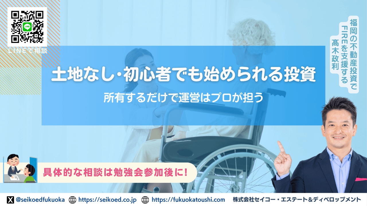 私は福岡を拠点に、不動産会社と工務店を一体化した事業を営みながら、新築アパート一棟と住宅型老人ホームのハイブリッド投資を提案してきました。現場でデータと需要を直接見ていると、老人ホーム市場はまさに“これから伸びる投資分野”であり、多くの投資家にとって新しい選択肢になると強く感じています。
