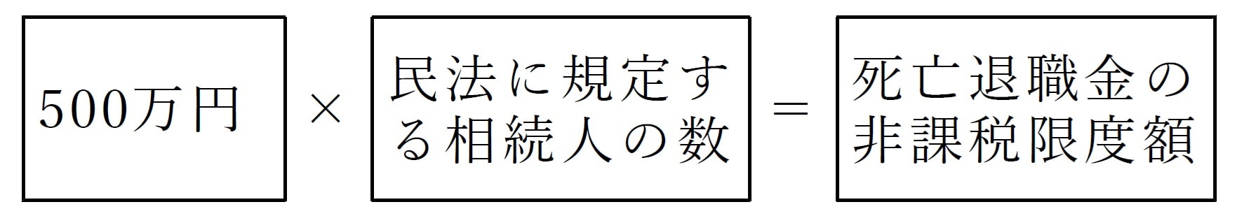 相続人が受け取った死亡退職金は、以下の式で算出された金額までが非課税となる。ただし、この非課税の適用は「相続人」に限られる。