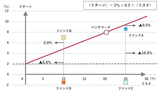 ・ジェンセンのα:CAPMで推計される期待リターンとの差