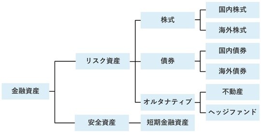 「アセット・アロケーション」とは、株式、債券、不動産、オルタナティブ資産などに資金をどのような比率で配分するかを決めることをいいます。資産クラス同士の値動きが異なるほど、分散効果でリスクを抑えつつ効率的にリターンを追求できます。