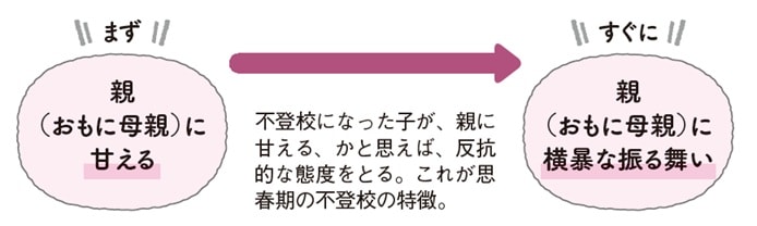 不登校の子の心の拠りどころは基本的に母親。でも、母親に受け入れてもらえない子もおり、そのとき子どもがとる態度はふたつあります。