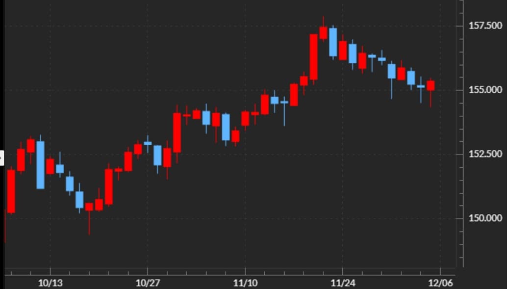 ・米ドル/円は一時154円台前半まで下落。年末が近づくにつれ、例年どおり円売りポジションの利益確定が進み、日銀の利上げなどに反応しやすくなっている可能性。ただし、この間の円売りを主導してきた日本の債券下落や長期金利の上昇は依然として続いている。