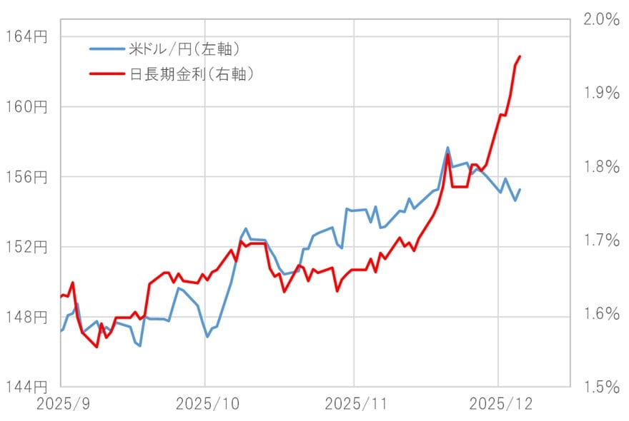 今回の円安をある程度説明できる要因は、日本の長期金利上昇でした。つまり、今回の円安再燃は、日本の財政リスクへの懸念から債券売りが進んだことが主導役だったように見えます。