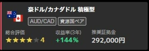 こちらも、他のプログラムと同様に収益率や推奨証拠金が表示されています。