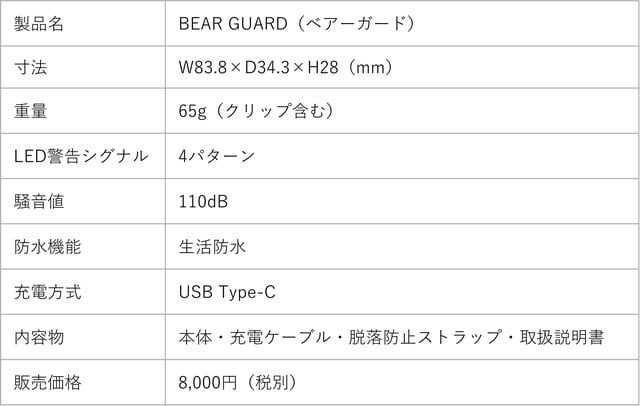 あらゆる社会課題解決に取り組み、防災商品を数多く製造・販売してきた弊社ですが、昨今急増する熊による人身被害を減らし、農業・林業の現場や登山などにおける安全対策の強化を図る"人をまもるアイテム"として、新たに本製品をリリースいたしました。