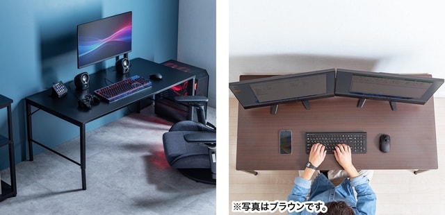 ノートPC+周辺機器、A4書類、コーヒーまで置ける幅120cmの余裕がありながら、奥行60cmの幅広設計。リビングにもワークスペースにもなじみ、作業台・学習机・ゲーミング用途まで幅広く活躍します。