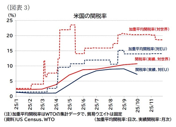 一方で、国際緊急経済権限法(IEEPA)に基づくトランプ関税の合法性が係争中であり、またEU側のエネルギーや投資拡大が現実的ではなく、今後合意内容を巡って摩擦が強まる可能性があるといった関税をめぐる不確実性も引き続き残っている。