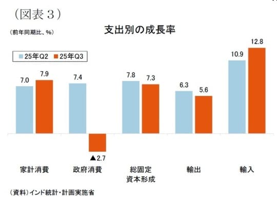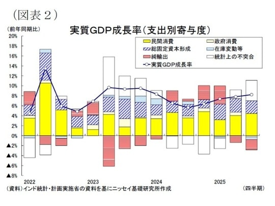 1 11月28日、インド統計・計画実施省(MOSPI)が2025年7-9月期の国内総生産(GDP)統計を公表した。