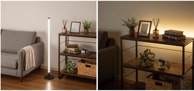 シンプルなデザインでお部屋になじみ、間接照明にもなる「LEDフロアランプ(YP001FL)」が、さらに使いやすく進化しました。新発売の「LEDフロアランプ(NTFL02)」では、ベース部から取り外して、本体だけでも点灯できるようになりました。