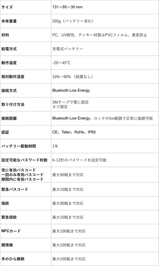 指紋認証:最先端半導体センサーにより0.3秒で高速解錠、98%の認証精度を実現。