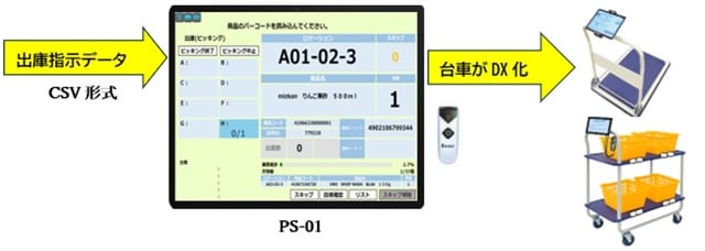 従来の倉庫DXは高額投資と長期導入が課題でしたが、PS-01はこれまで構築してきた多数の業種業態ピッキングシステム開発ノウハウを活用し、タブレットとバーコードスキャナーを接続し出庫指示データを入力するだけで即日稼働。既存の中小規模倉庫でも負担なく導入できる画期的なソリューションです。