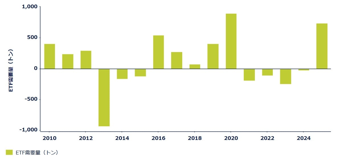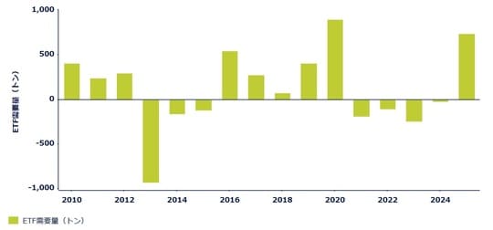 特に新興国の中央銀行は構造的な需要源としての役割を維持しており、第3四半期の買い入れの回復および価格の下支えに寄与しました。2025年通年の買い入れは、年間約1,000トンという近年のトレンドには届かない可能性があるものの、依然として過去最高水準に迫る力強い需要が見込まれます。