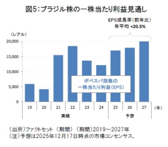 ブラジル経済が内需主導の底堅い成長を取り戻していることが、ブラジル企業の事業環境の改善に寄与しつつあり、ブラジル企業の利益見通しは2026年から2027年に向けて堅調な増益基調が見込まれています[図表5・10]。
