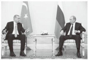それから8月9日、犬猿の仲だったはずのトルコのエルドアン大統領を招き、サンクトペテルブルグで会談した。