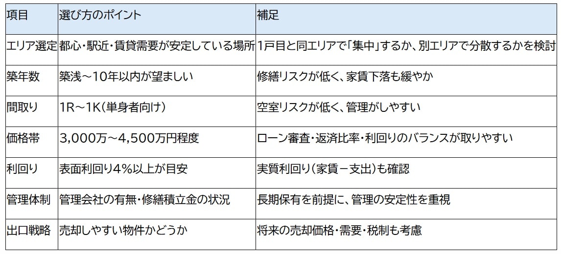 1戸目の成功体験に固執せず、以下のように戦略的な物件選びを行いましょう。