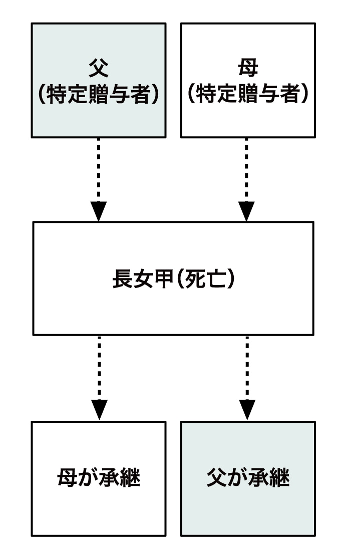 ・父から長女甲への特定贈与に係る納税義務は、母が承継