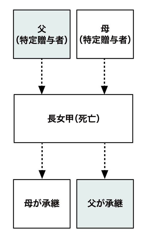 相続時精算課税適用者(本件では長女甲)に子どもがいない場合、民法上、尊属である父母が相続人となります。