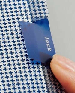 そこで、書類のサイズに関わらず安心してお使いいただけるよう、カモフラージュ柄をホルダーの端まで広げた全面印刷にしました。また、収納した書類の落下を防ぐロック機能を新たに搭載。ホルダー開口部の上下2カ所が開かないようにロックできる仕組みで、A4サイズの用紙だけでなく、小さな書類も安心して持ち運べます。