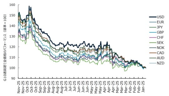 注:USD=米ドル、EUR=ユーロ、JPY=円、GBP=英ポンド、CHF=スイスフラン、SEK=スウェーデン・クローナ、NOK=ノルウェー・クローネ、CAD=カナダドル、AUD=オーストラリアドル、NZD=ニュージーランドドル。過去のパフォーマンスは将来のパフォーマンスの信頼できる指標ではありません。