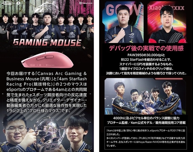 株式会社ラッシュライフは、ゲーミング由来技術で開発された超低遅延プロ仕様マウス「Canvas Arc Gaming & Business Mouse (汎用タイプ)」と「4am Starflash Gaming Pro (ゲーム特化タイプ)」の2モデルを、アタラシイものや体験の応援購入サービスMakuakeで先行販売しました。